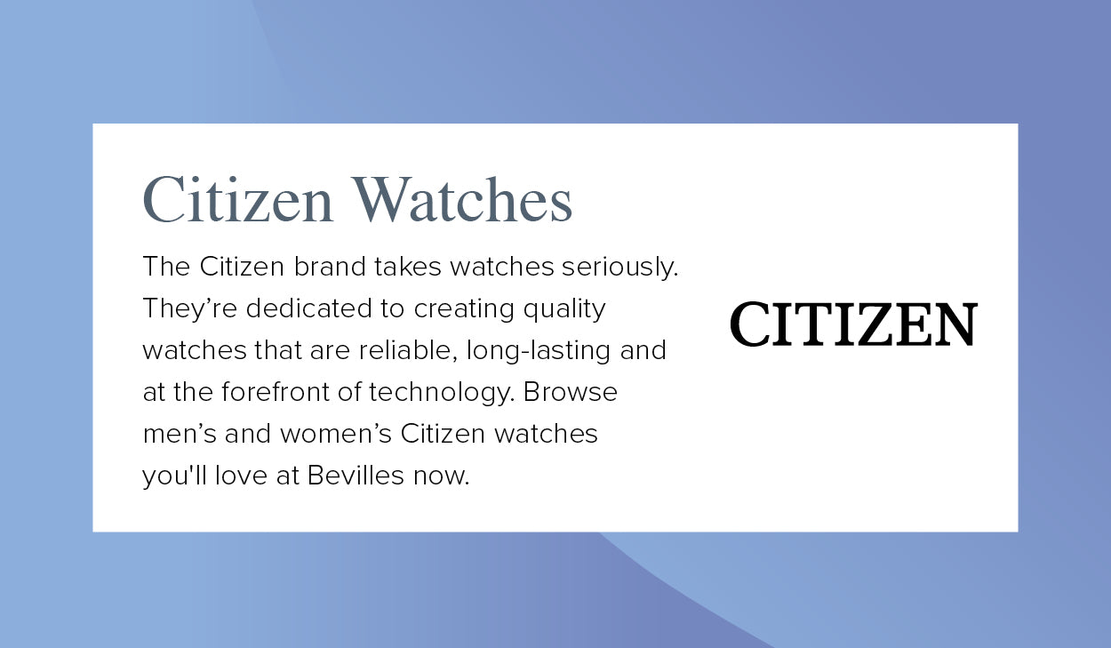 Available in a range of models and styles, Citizen watches have been an innovative and elegant watch choice since 1918. From their humble beginnings, Citizen has become a global leader in high-quality, reliable and trusted watches.