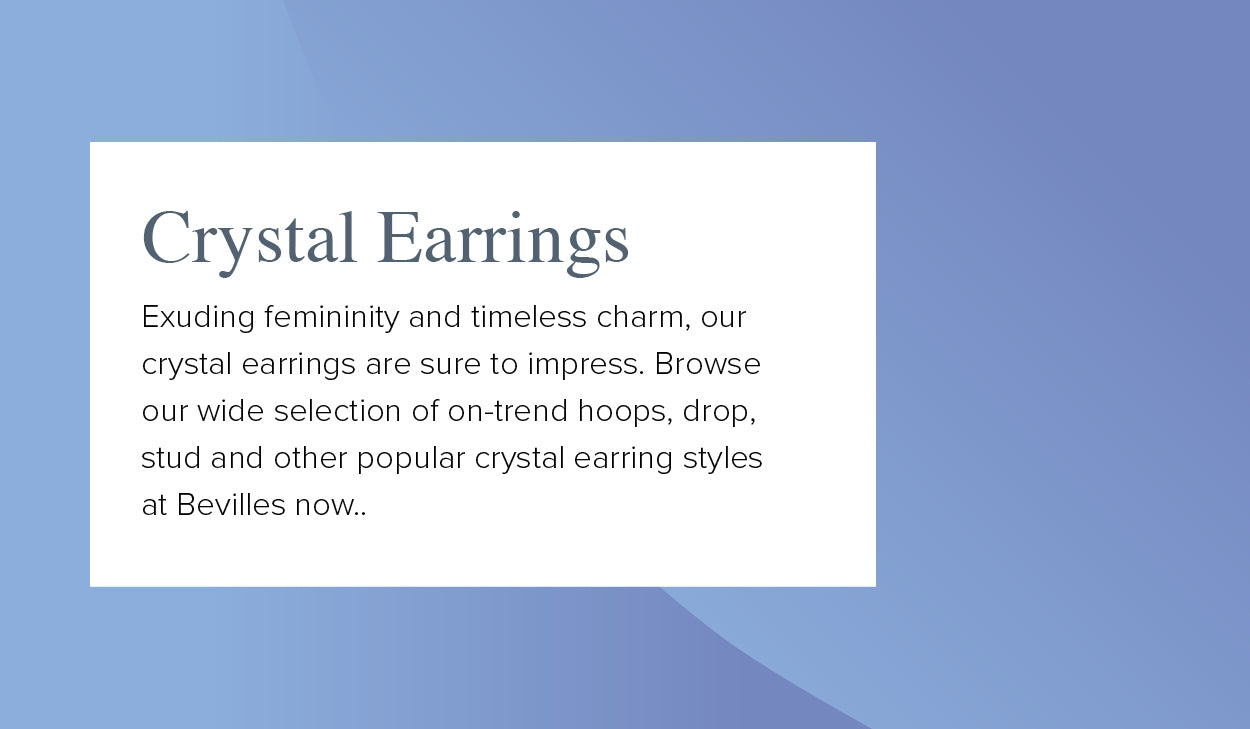 From classic through to modern crystal earring designs, Bevilles has you covered with our breathtaking selection of crystal earrings in chic designs that feature precious crystals and pure metals like rose, white and yellow gold, silver and stainless steel.