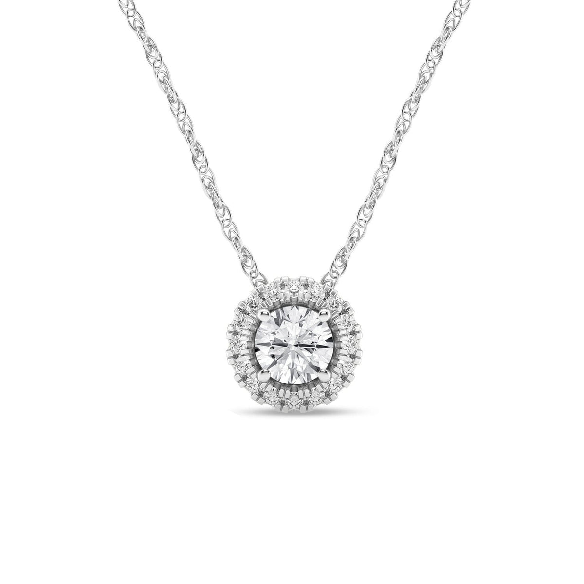 45cm Halo Solitaire Necklace with 0.50tw of Laboratory-Grown Diamonds in Sterling Silver and Platinum