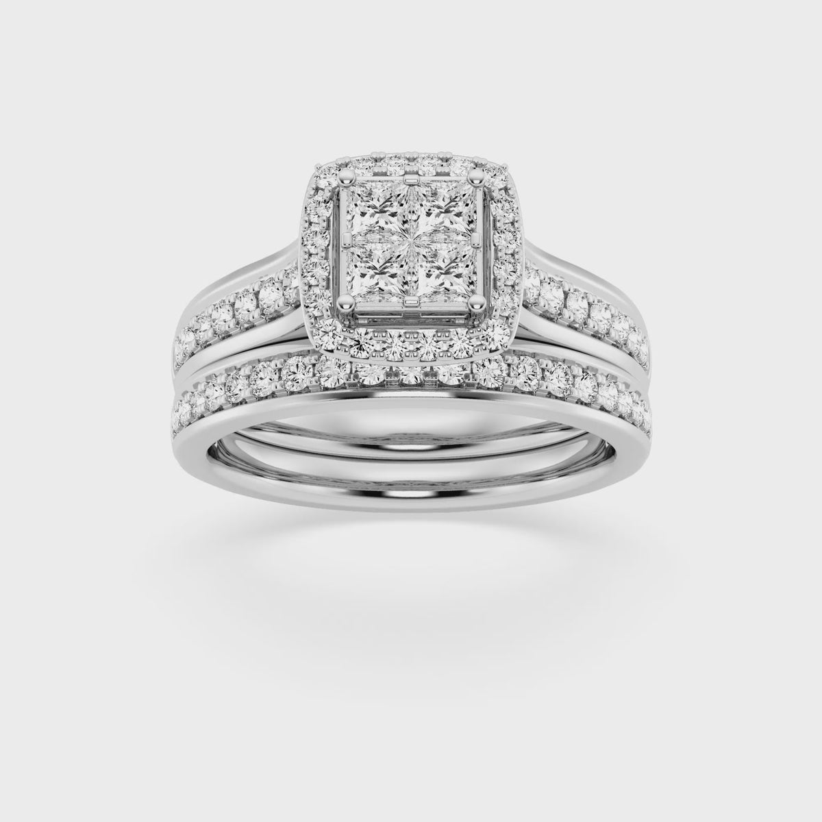 Sterling Silver Cubic Zirconia Invisible Princess Ring Set