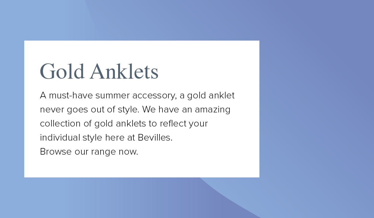Buying gold anklets online has never been easier. Explore our collection and find anklets for sale in a range of sizes, designs, and materials, all crafted with exceptional quality. Whether you're looking for gold anklets for women, rose gold anklets, or white gold anklets, Bevilles has the perfect anklet for you.