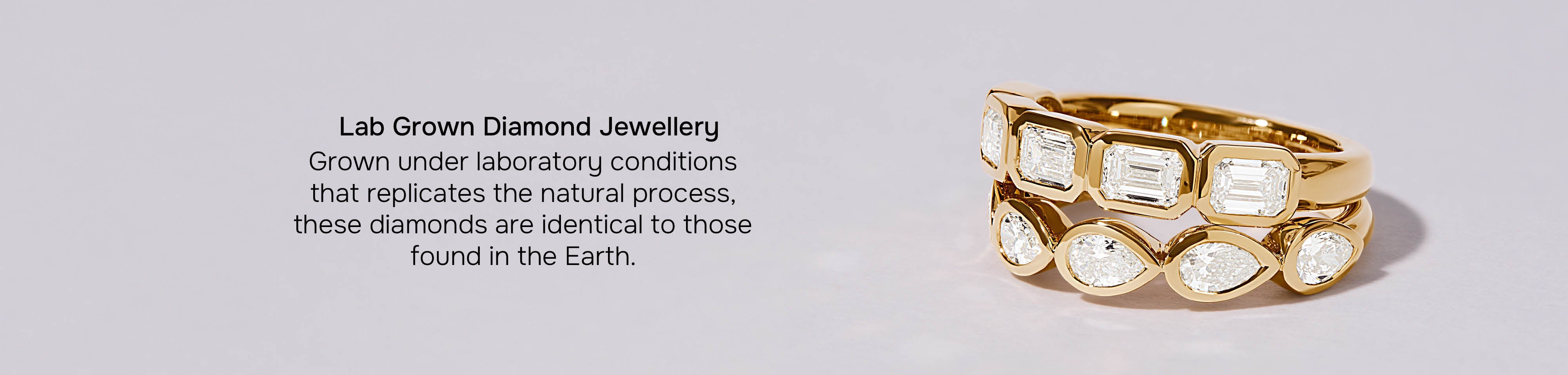 Elevate your jewellery collection with our stunning lab grown stones, crafted in state of the art laboratories. Immerse yourself in the captivating world of lab grown jewellery; environmentally conscious gems that sparkle with the same fire and brilliance as their mined counterparts. Whether you're searching for the perfect engagement ring, a timeless pendant, or a pair of dazzling earrings, our collection has something to suit every style and occasion. Embrace the brilliance of lab grown jewellery and make a statement that goes beyond fashion. Lab Grown Jewellery