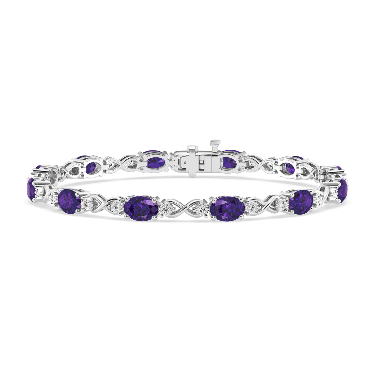 18.5cm Oval Amethyst Infinity Bracelet with 0.20tw of Diamonds in Sterling Silver