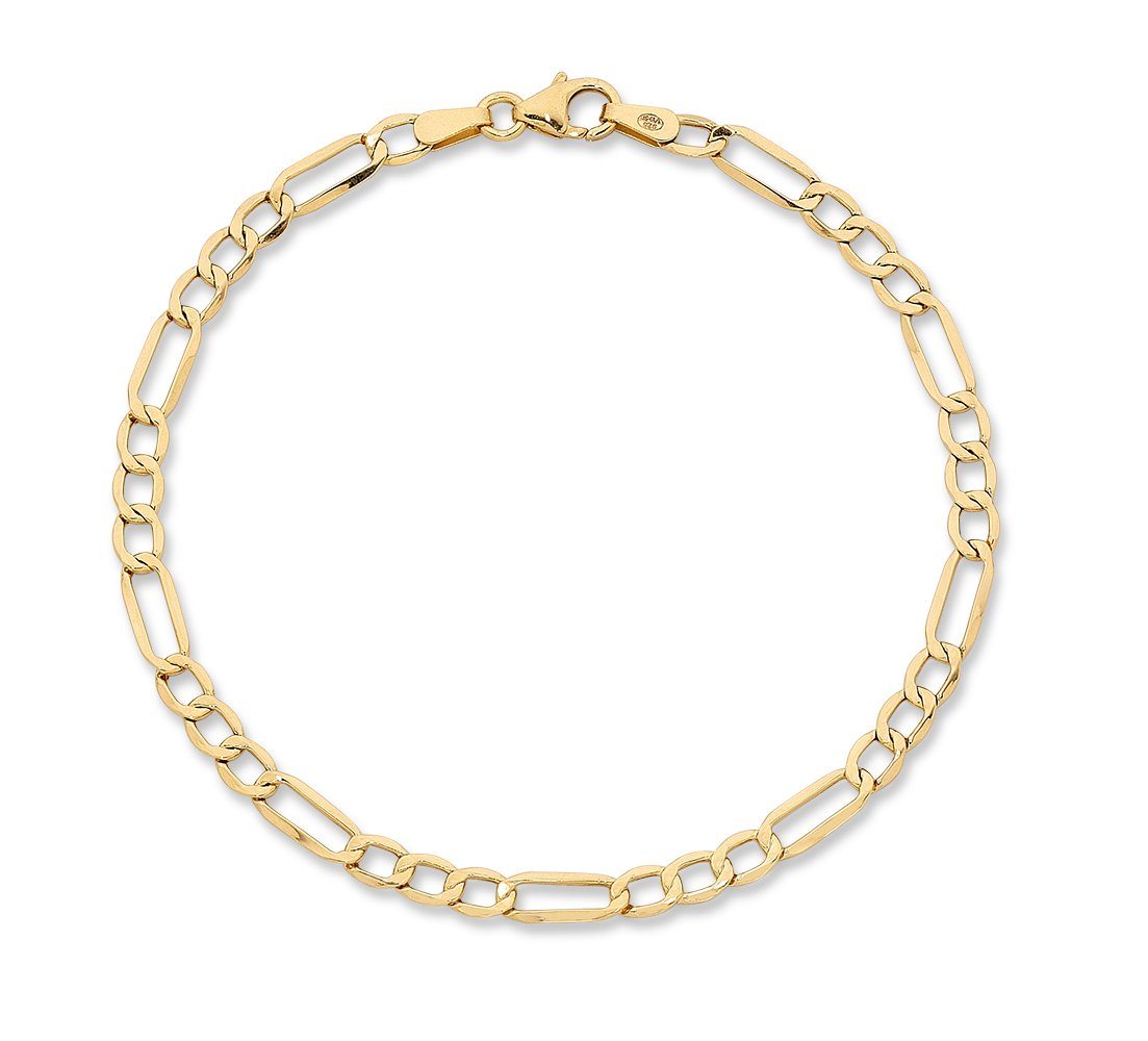 9kt Yellow Gold Cuban Style Figaro Bracelet with Cubic Zirconia