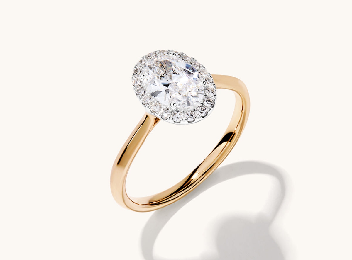 Exude sophistication with this limited-edition 9kt yellow and white gold oval halo ring featuring 1.10ct total weight of laboratory-grown diamonds. The 2mm band meets the 10.6mm halo design, with pavé set G colour and VS clarity laboratory-grown diamonds surrounding the oval cut centre stone weighing 1.06ct, with a total diamond weight of 1.10ct. Crafted in warm 9kt yellow gold, this timeless halo ring radiates sophistication and charm.