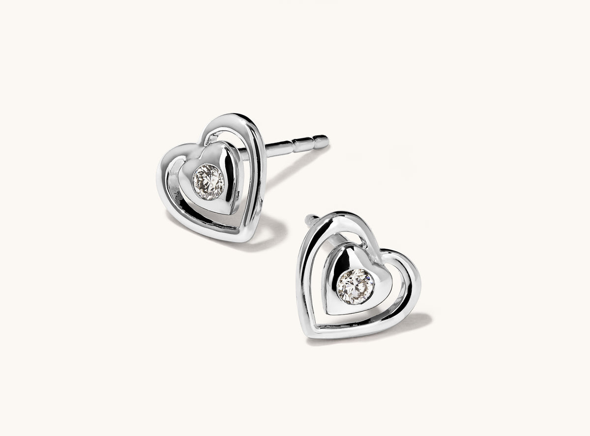 Showcasing a dainty 6mm by 7mm open heart design, these studs are bezel set with round brilliant solitaire laboratory-grown diamonds of GH colour and SI1-SI2 clarity. Perfect styled alongside your favourite earrings in an ear stack or individually, these earrings will complement your look both day and night.