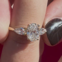 3 Stone Oval and Pear Ring with 2.00tw of Laboratory-Grown Diamonds in 9kt Yellow Gold