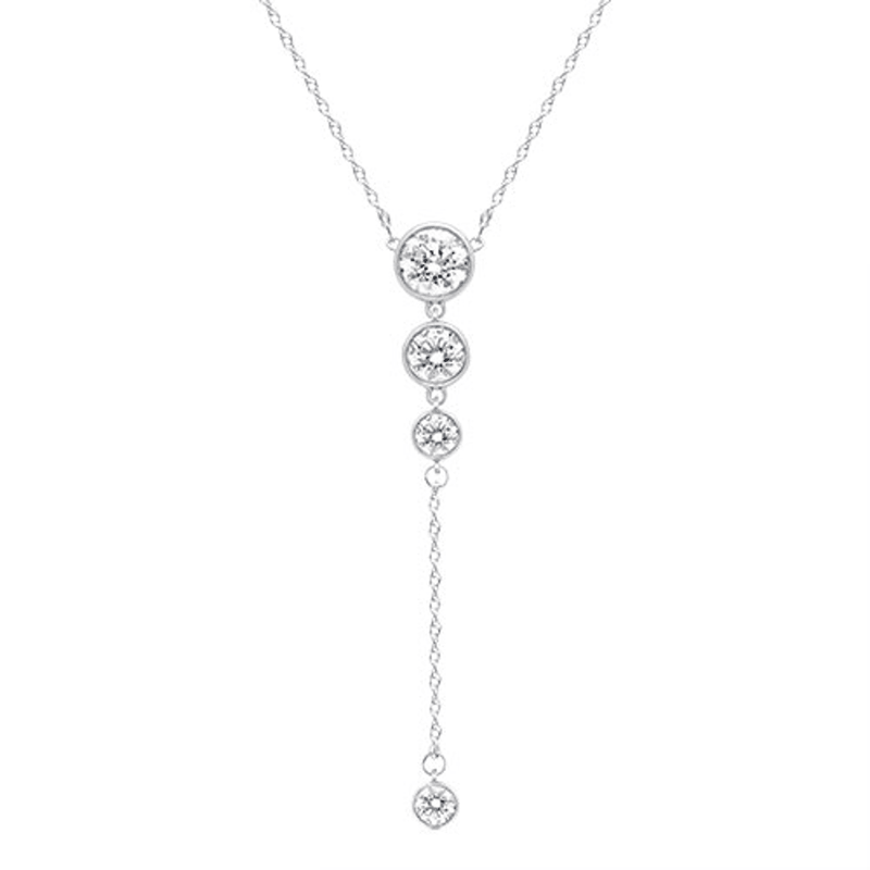 45cm Bezel Set Lariat Necklace with 1.00tw of Laboratory-Grown Diamonds in Sterling Silver and Platinum