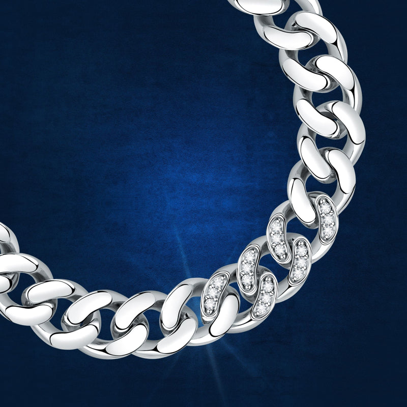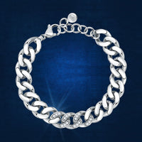 Presenting the Chain Collection White Stone Bracelet. Featuring glittering white stones set in silver, this bracelet is perfect as a gift, or to complement an array of outfits.