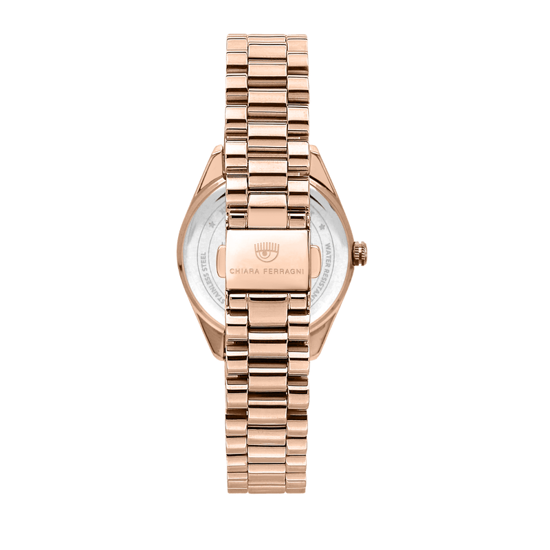 With a glitter embellished white dial and an all rose gold design, this watch is the perfect combination for a range of outfits. Sparkle with Chiara Ferragni!