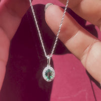 45cm Created Emerald Necklace with 0.13tw of Laboratory-Grown Diamonds in Rhodium Plated Sterling Silver