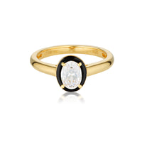 Georgini Reflection Oval Ring Gold & Black Enamel