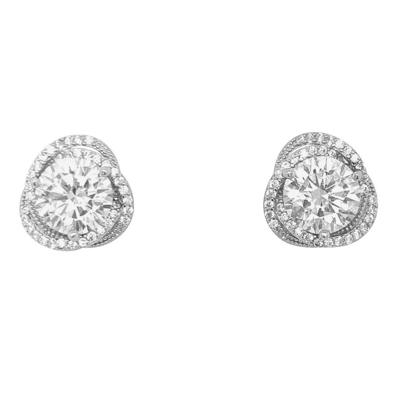 Sterling Silver Cubic Zirconia Swirl Halo Stud Earrings
