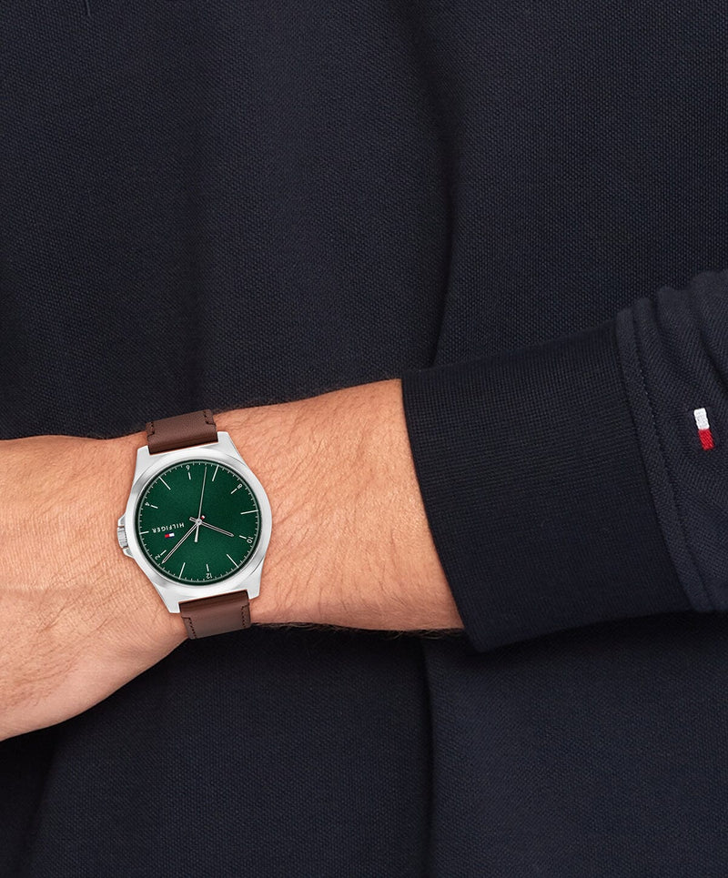 Tommy Hilfiger Norris Brown Leather Green Dial Men's Watch 1710602